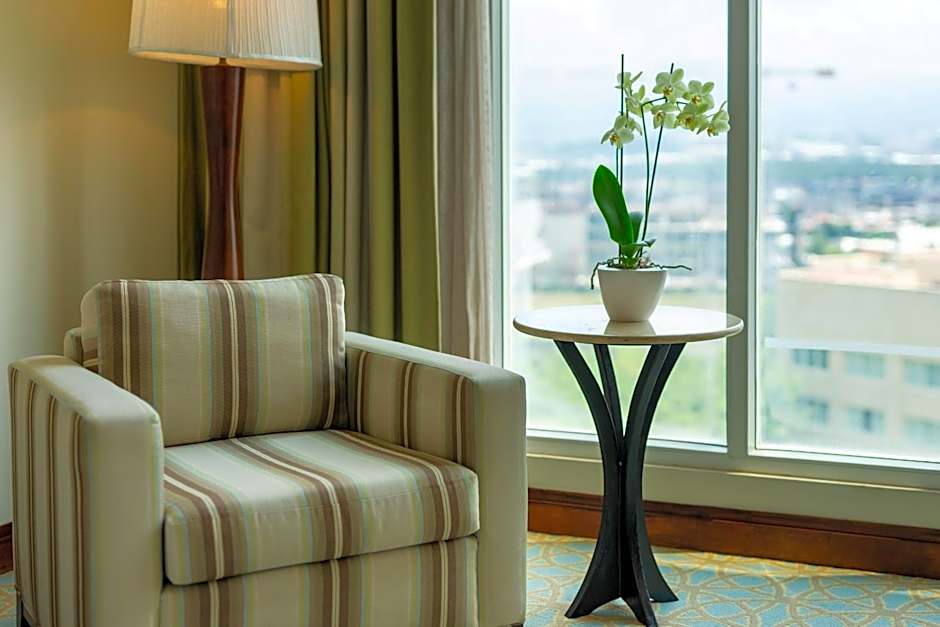 Featuring free toiletries and bathrobes, this suite includes a private bathroom with a bath, a shower and a hairdryer. The spacious air-conditioned suite features a flat-screen TV with cable channels, a mini-bar, a tea and coffee maker, executive lounge access as well as garden views. The unit has 1 bed.